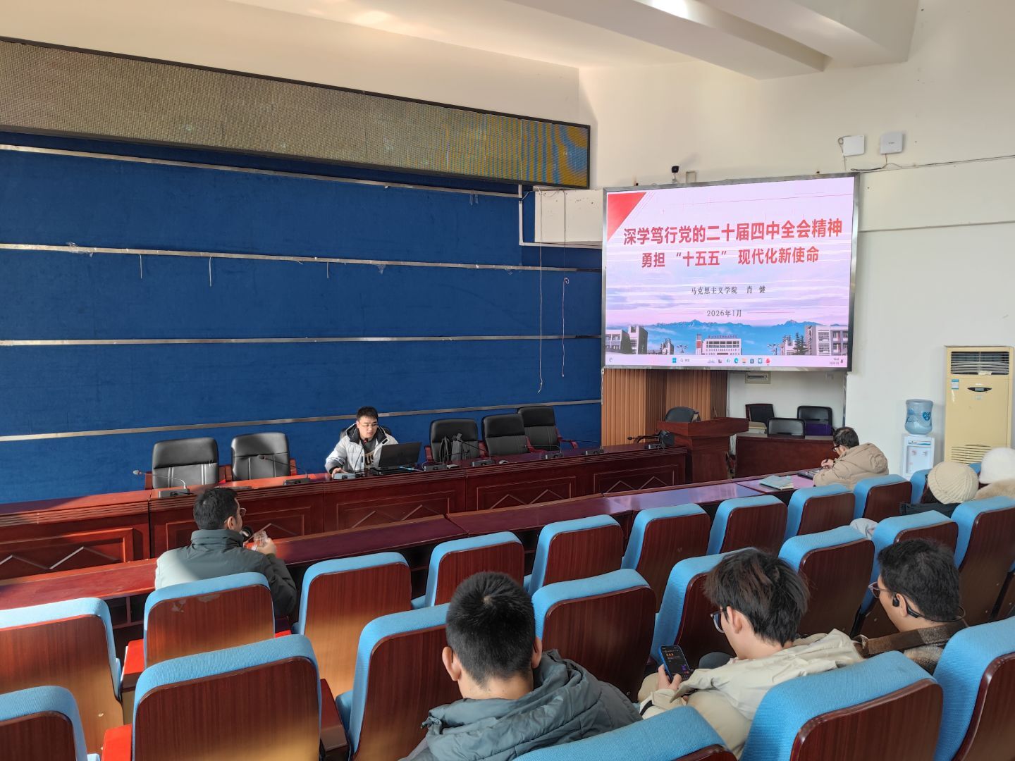 为持续深化对党中央重大决策部署及省委发展战略的理解与把握,2026年1月6日,智信学院党总支精心组织专题辅导党课,先后邀请马克思主义学院教师肖健、学院党委常委、副院长聂文俊为智信学院全体党员作专题辅导报告,推动理论学习与专业发展深度融合。